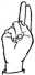 На ћирилици написано ПЕРИША РАДОВИЋ састоји се из 13 слова [?]. Исписано ћириличном једноручном азбуком за глувонеме: